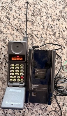 Vintage Motorola Airtouch phone. Comes with charger and cord. Phone powers on. Unclear on how much battery power remains.