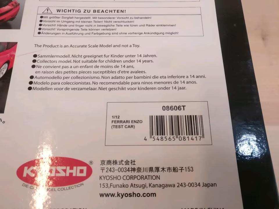 Kyosho 1/12 Scale Enzo Ferrari Test Car Model 0806T First Edition 2004