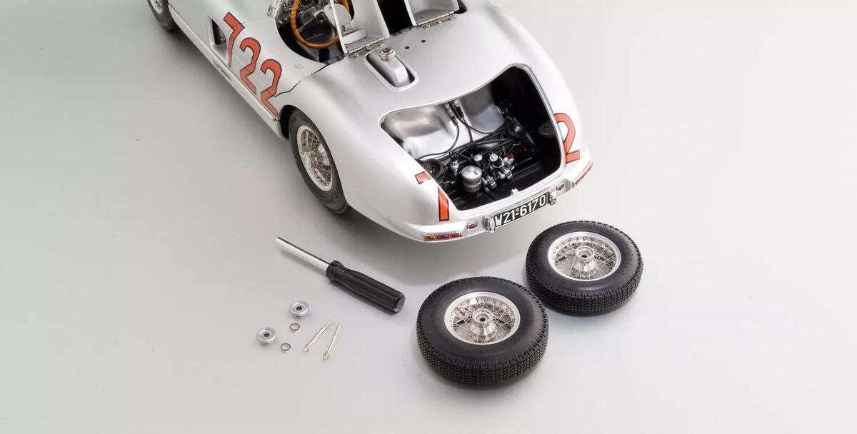 This latest release by CMC marks a heart-warming tribute to the great victory of Mercedes-Benz at the Italian endurance race Mille Miglia in 1955. During the competition, the British racing guru Stirling Moss and his co-pilot Denis Jenkinson carried the day, driving their Mercedes-Benz 300 SLR. This racing car with the starting number 722became a legend in the racing history.
