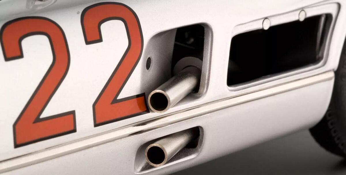 In deference to Stirling Moss, the model is presented with the service panel removed for easy maintenance. The panel can easily mount on the magnetic frame. The sidepipes are made of stainless steel