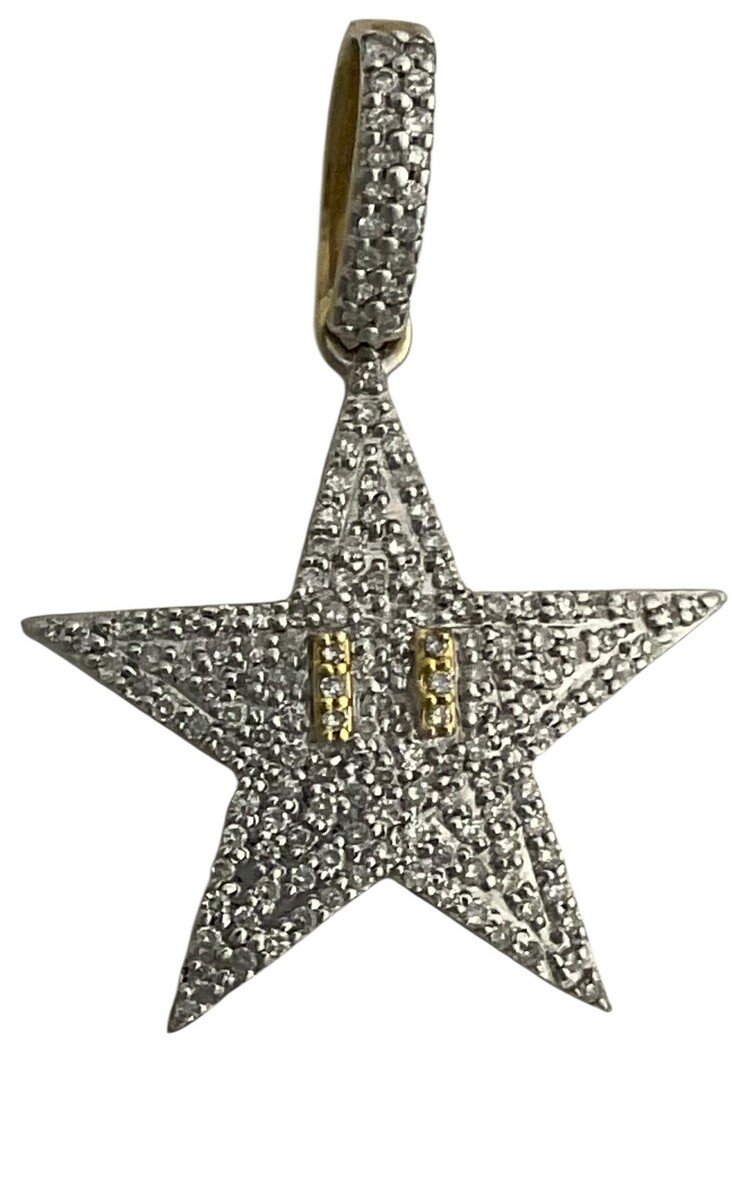 Type: CharmWeight: 1.5Karat: 10ktMetal: Yellow GoldGender: Men'sStyle: FancySize / Length: 1"Owner applied: 10K AMBStone 1 quantity: 149Stone 1 shape: RoundStone 1 color: ClearStone 1 weight (total): .44Stone 1 type: DiamondCondition:Used