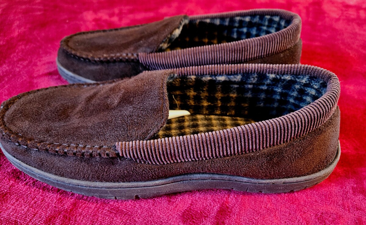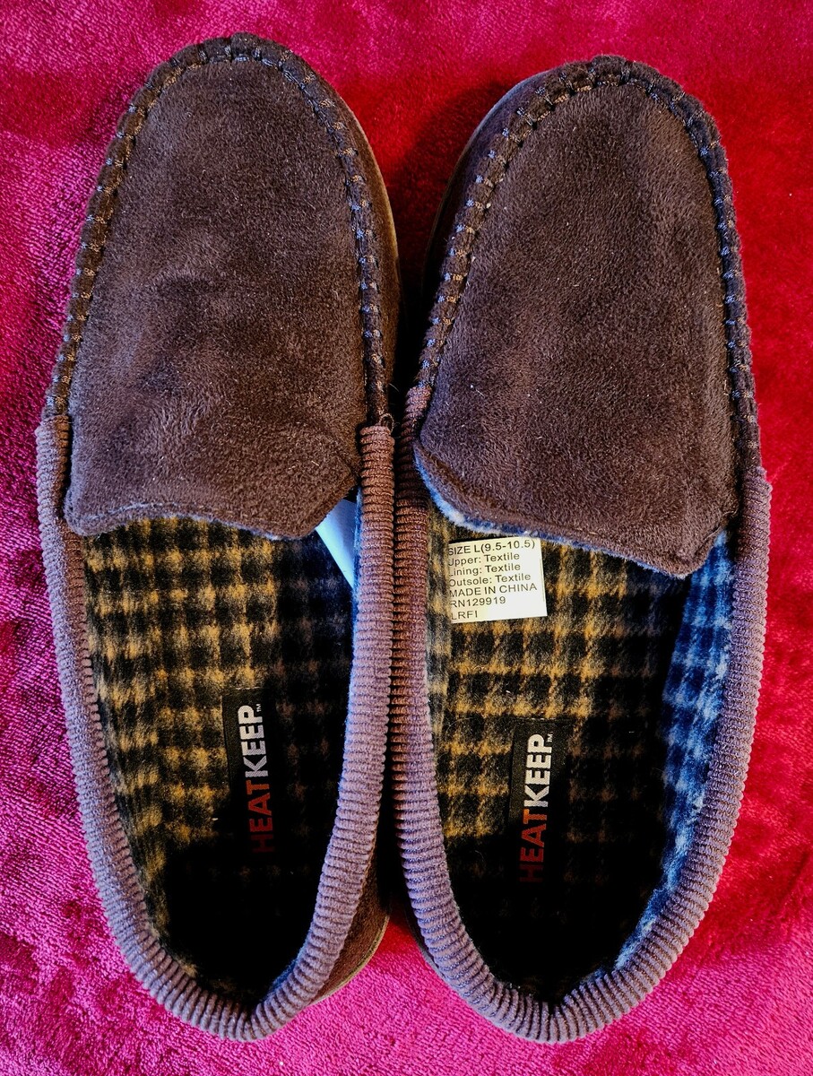 HeatKeep Men’s Memory Foam Moccasin Slippers L 9.5 - 10.5 Indoor Outdoor Slip-On
