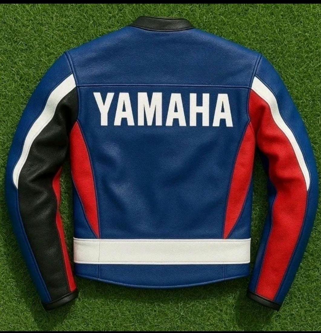 Yamaha Racing Leather Motorcycle Jacket MotoGP Biker Style
