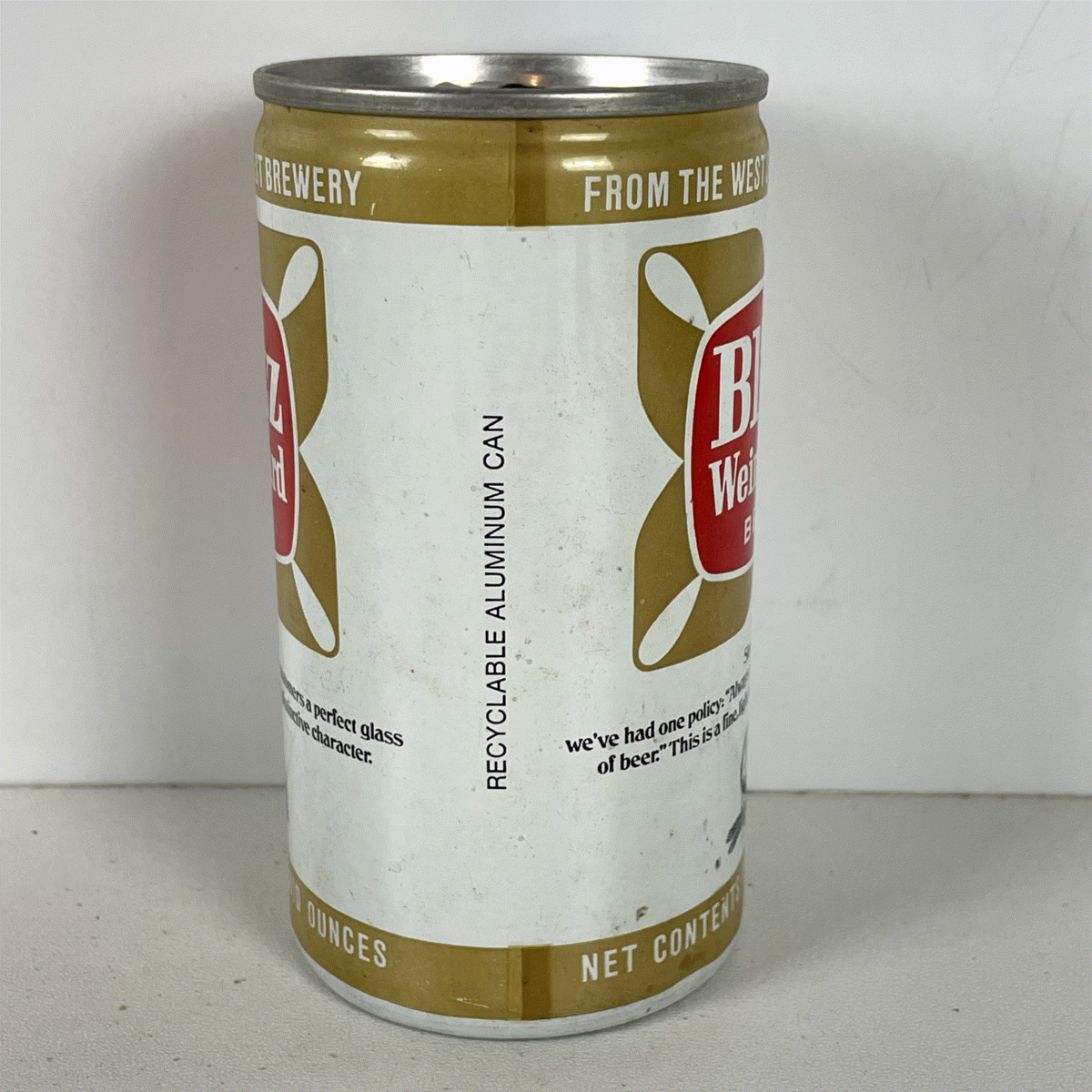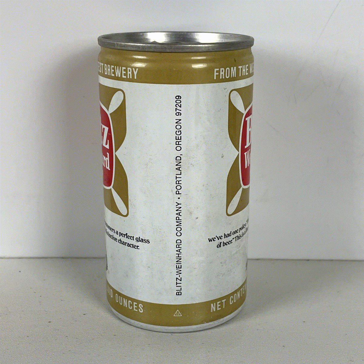 Blitz Weinhard Beer Can Vintage White Gold Red 12oz Aluminum Collectible