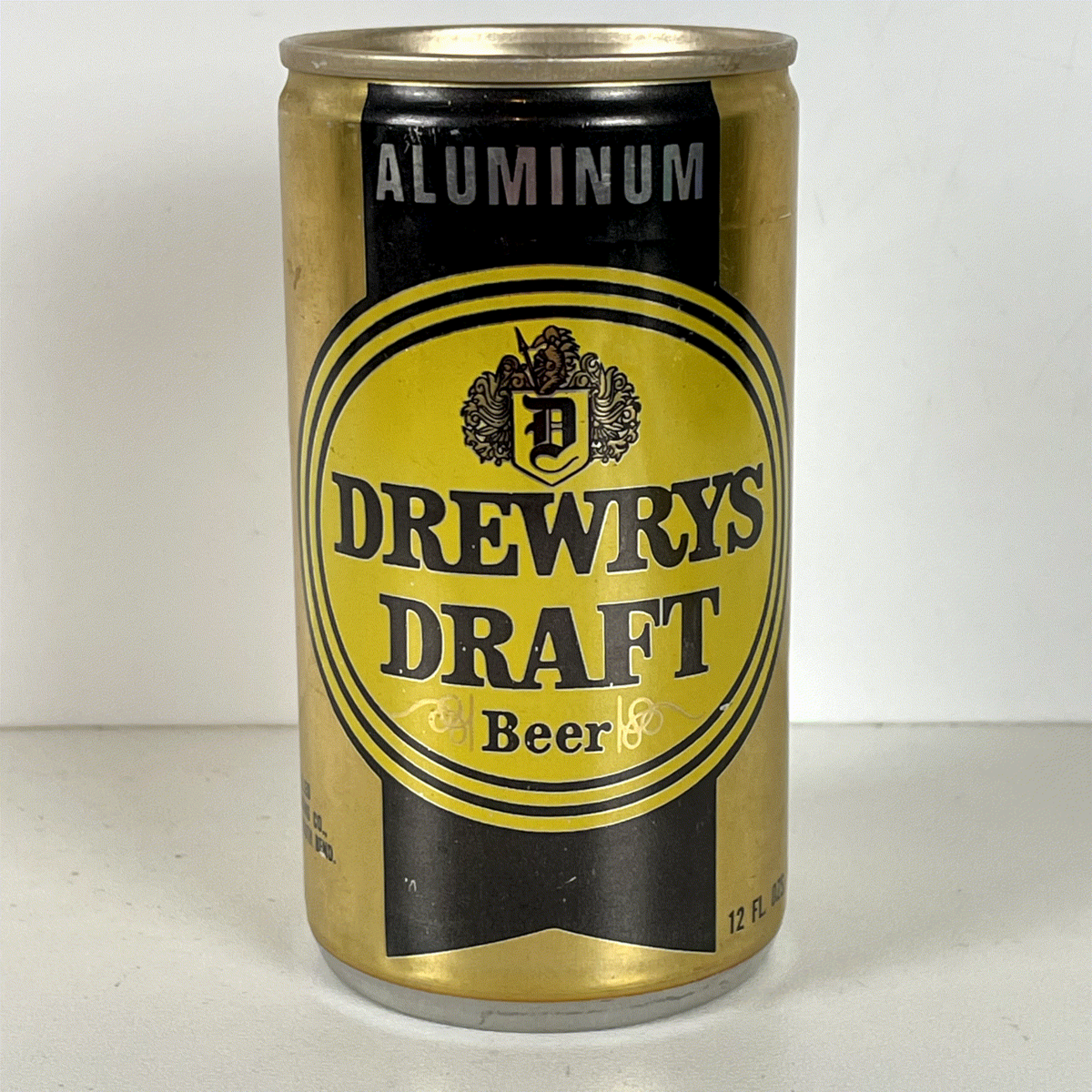 Drewrys Beer Can Vintage Mini-Keg Pull Tab Gold Black 12oz Aluminum