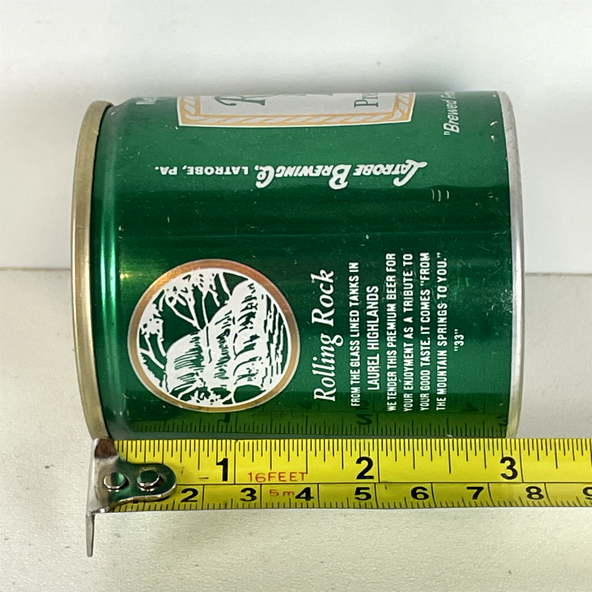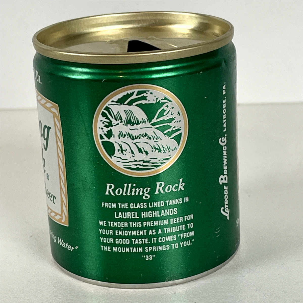 Rolling Rock Beer Can Vintage Green 7oz Mini Aluminum Waterfall "33" Breweriana