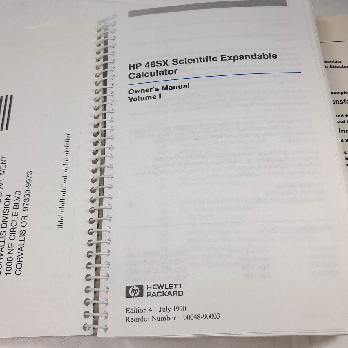Includes HP 48SX Scientific Expandable Owner?s Manual Volume 1 and 2 from 1990, edition 4