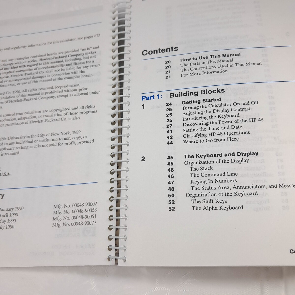 HP 48SX Scientific Expandable Owner’s Manual book set Volume 1 & 2 i ii 1990