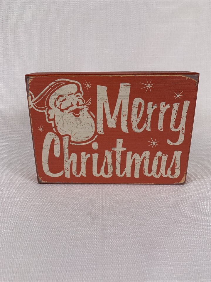 Merry Christmas Wooden Sign Santa Holiday Decor ~ Vintage Character Rustic