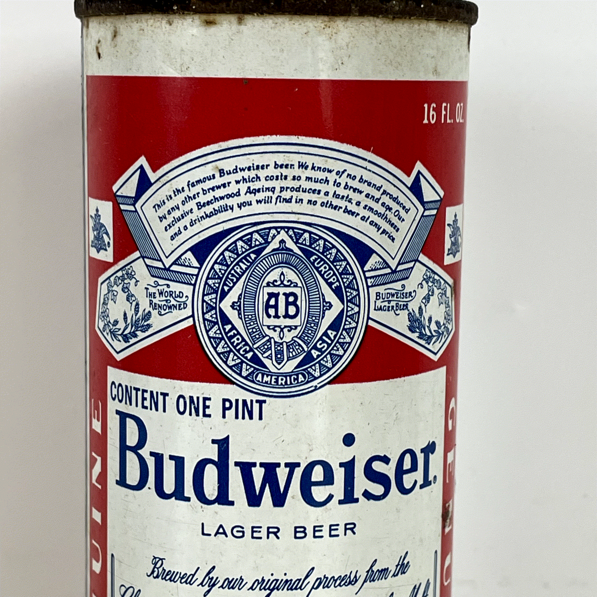 Budweiser Beer Can Vintage Tab Top 16 fl oz Red White Blue Steel Collectible