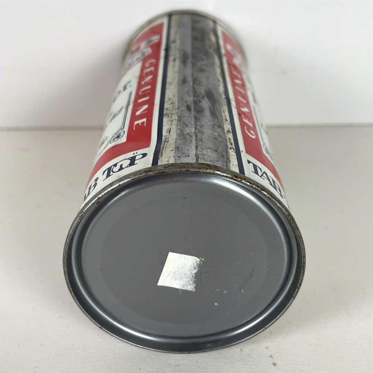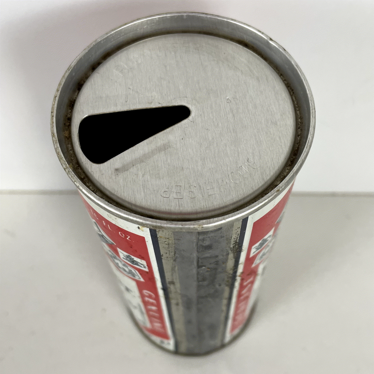 As a 'Tall Boy' one-pint container, this metal can showcases a classic tab top opening, characteristic of mid-century beverage packaging. The side seam construction and detailed typography make it a standout piece for any breweriana collection or as a decorative element in a home bar or man cave. This collectible represents a significant era in American brewing history and packaging design.