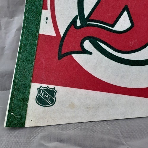 Vintage 80s NHL New Jersey Devils Pennant Red Green White Hockey Bar Collectible