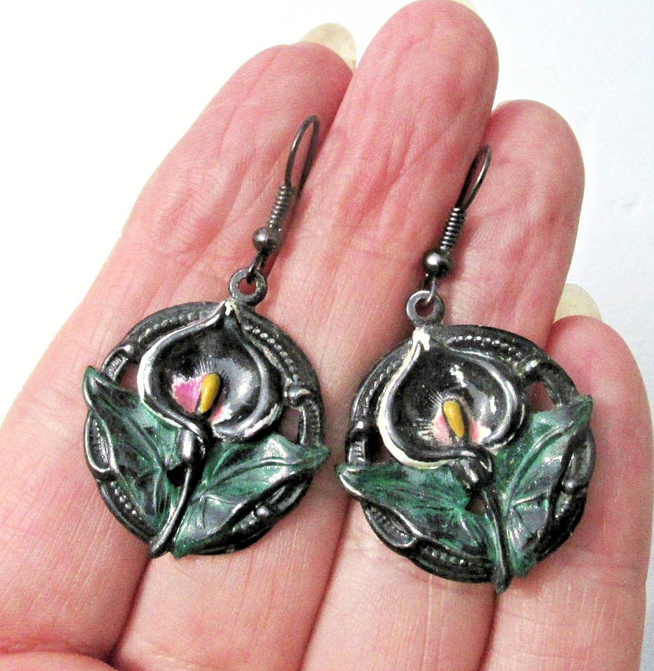 Black CALLA LILY Enamel Dangle Vintage and similar items
