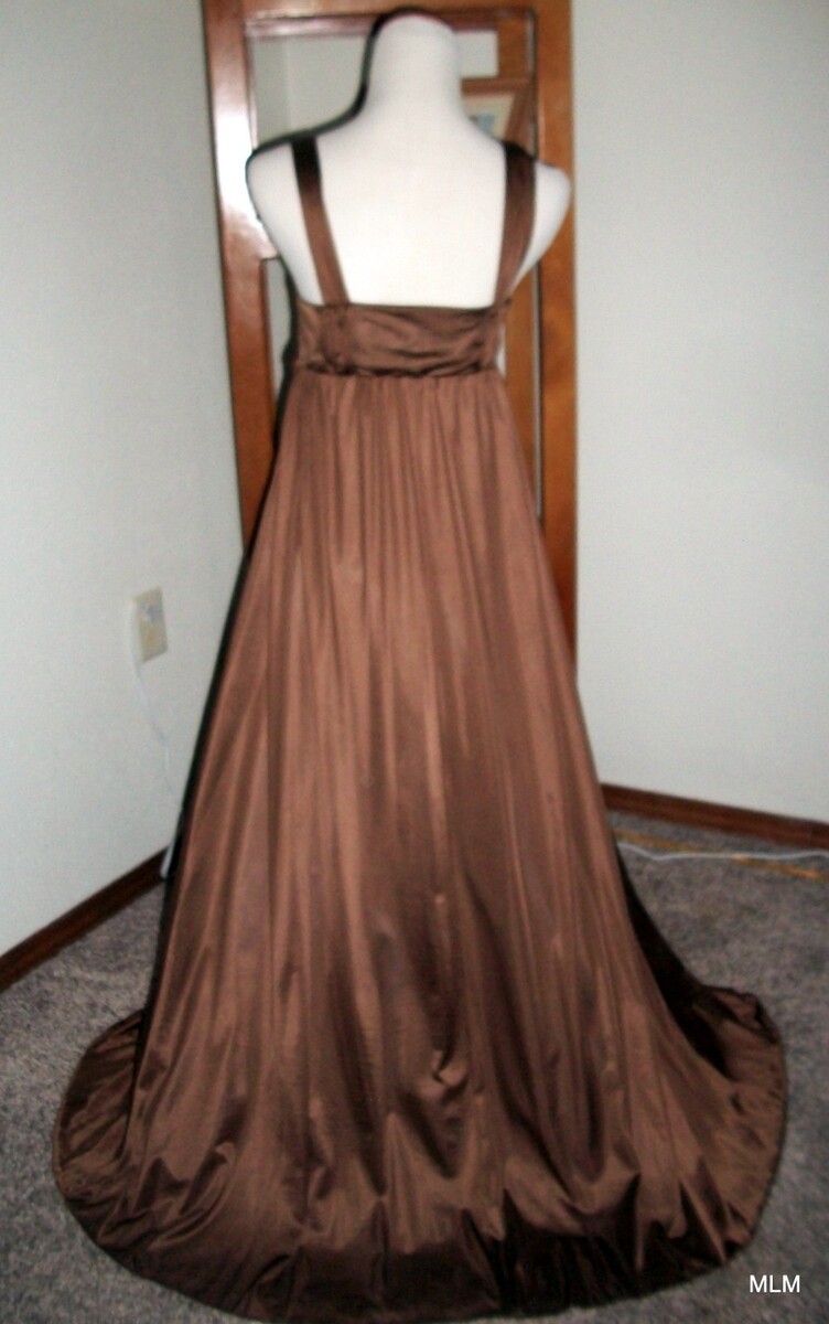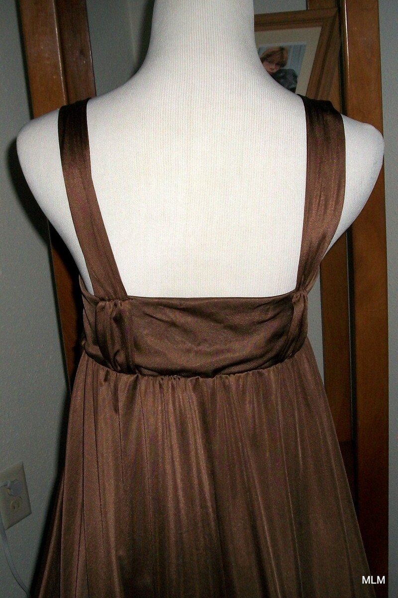 RARE OLGA Rich Warm Golden Bronze Cross Over Bodice Flowing Nylon Skirt #9215