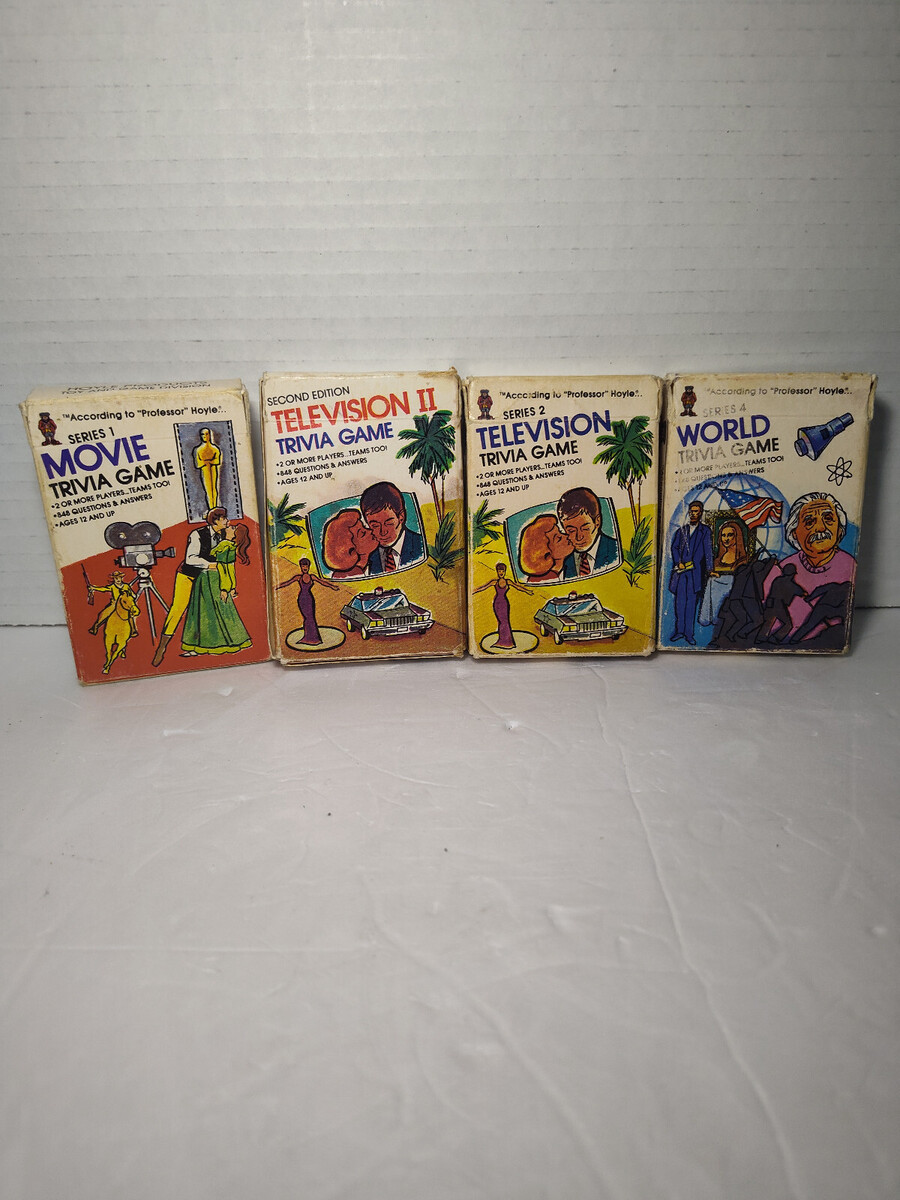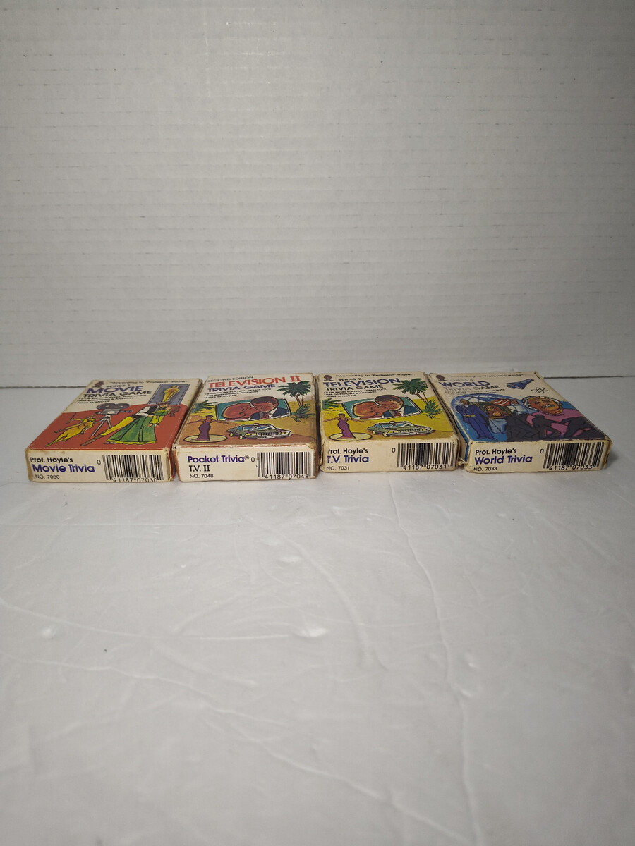 Lot Of 4 Hoyle Pocket Trivia Game Cards 1984/85 Television 1&2, Movie, and World