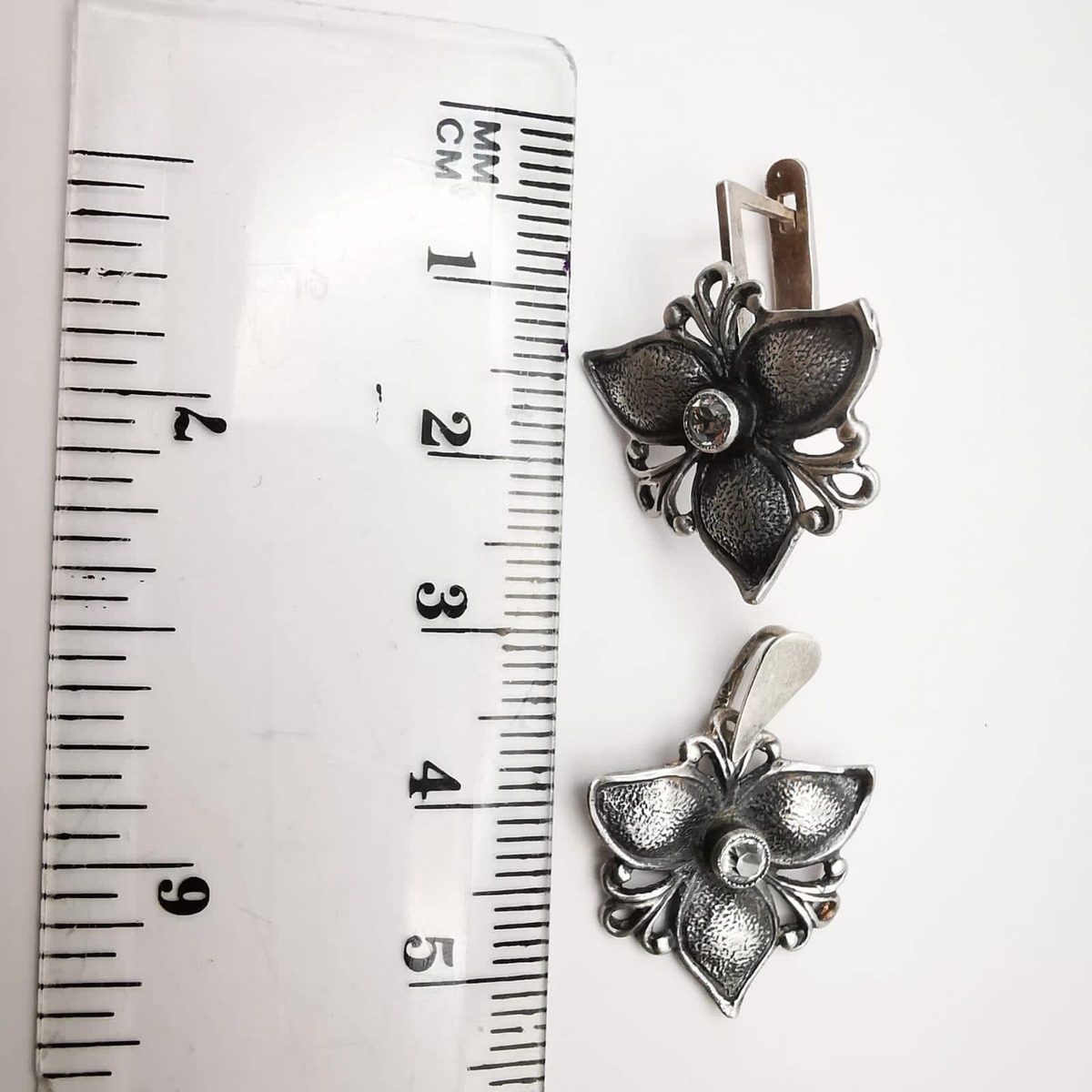 Vintage,Jewelry,Women's Earrings,Pendant"Ice Flower" 925 Sterling Silver,Zircon
