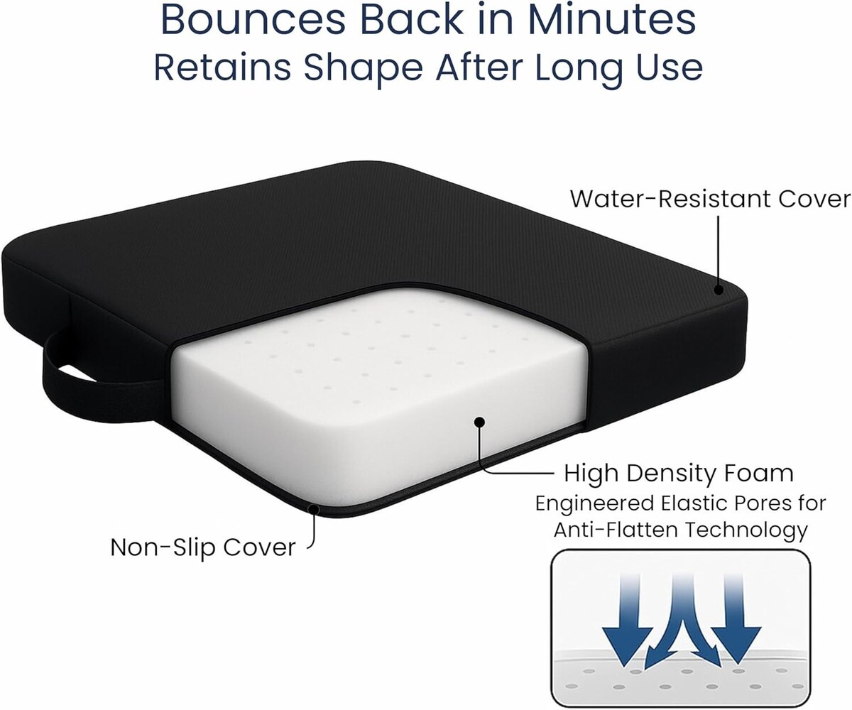Provides optimal cushioning for prolonged sitting hours without flattening, ensuring your comfort remains unmatched.
