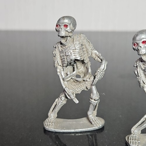 Ral Partha Pewter Skeleton Warrior Lot 2 Jewel Eyed Undead Vintage DnD Figurine