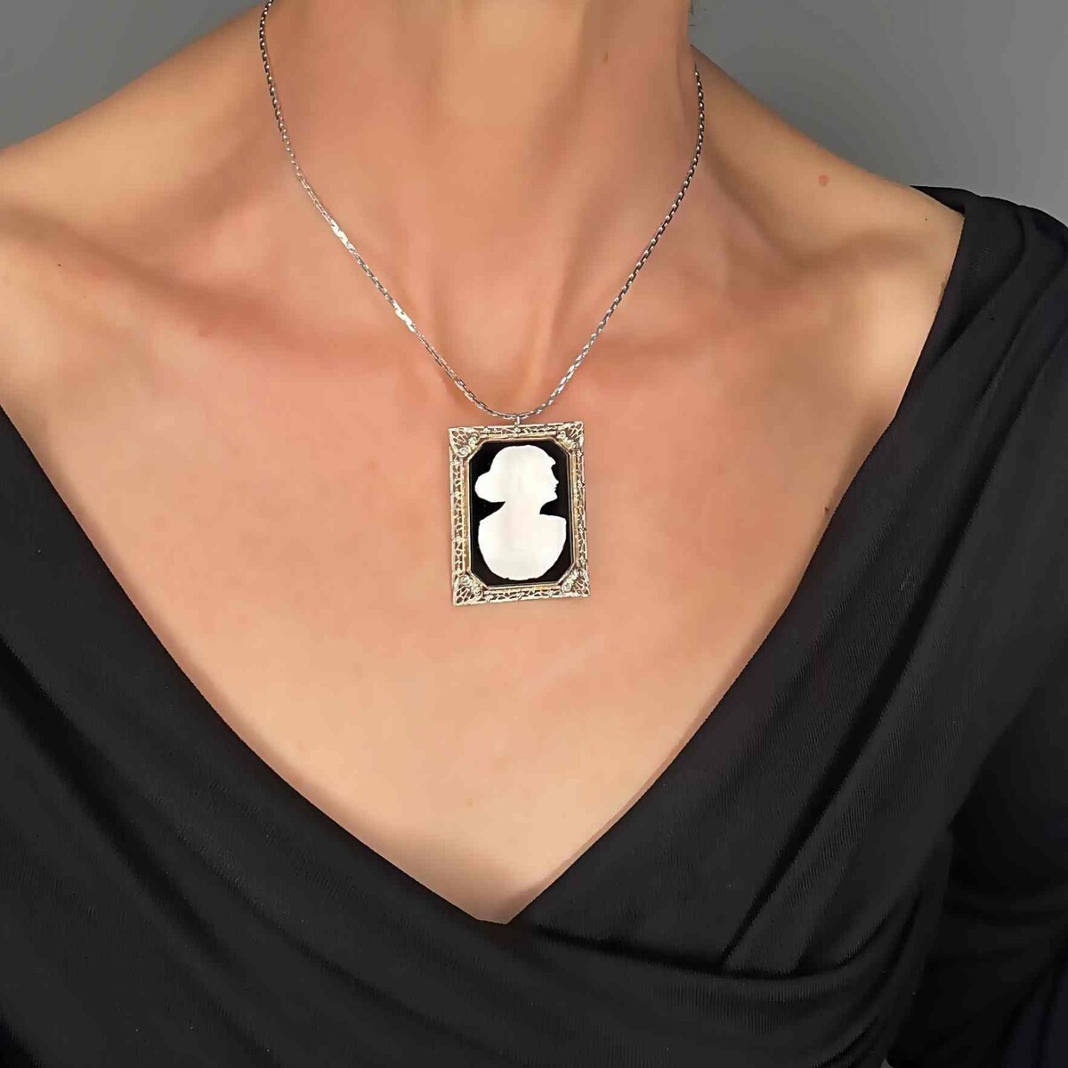 The photos form part of the description of this beautiful cameo necklace.