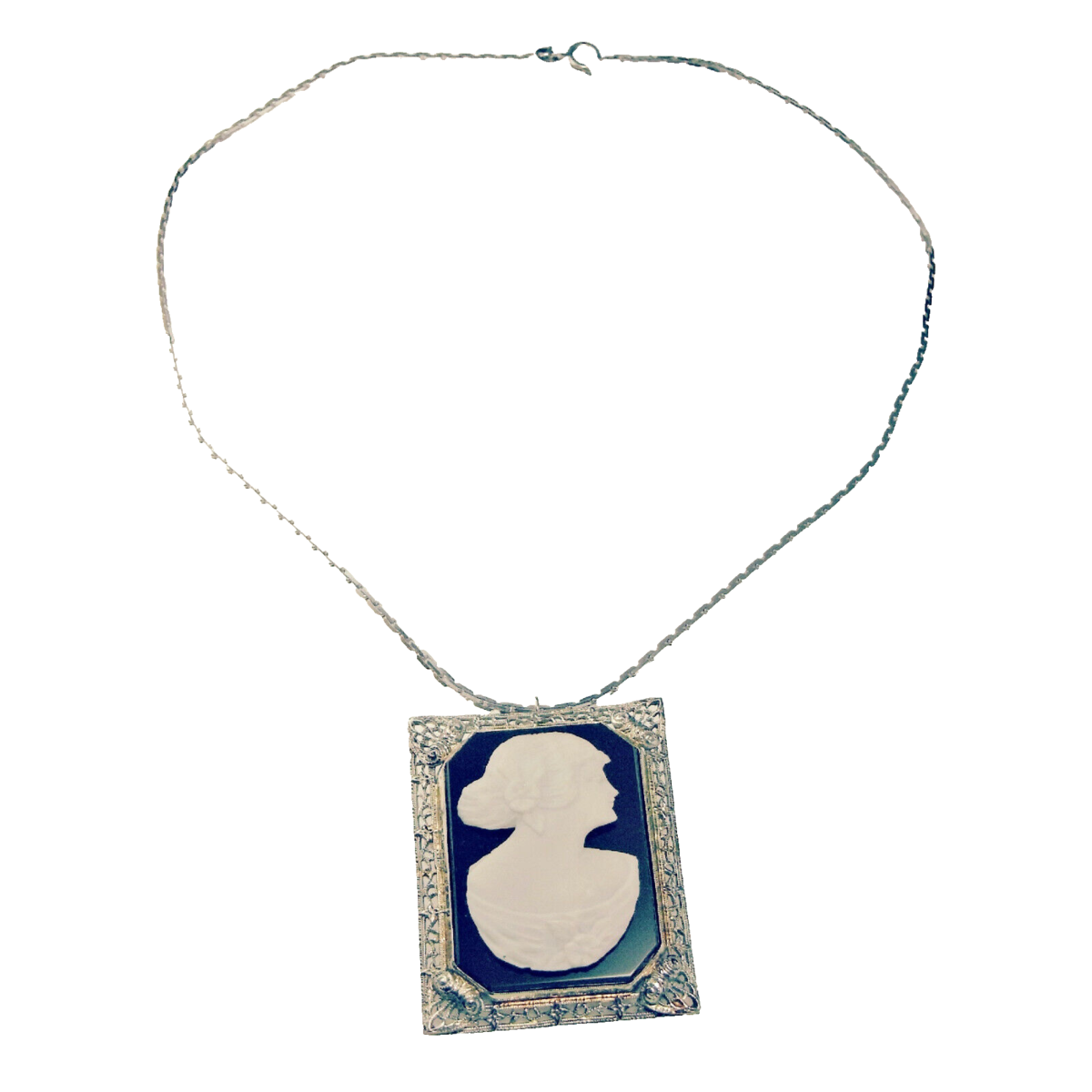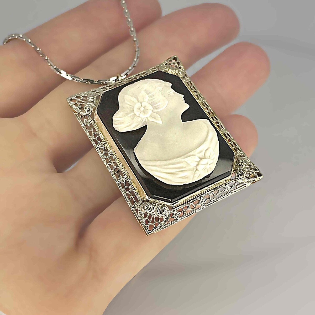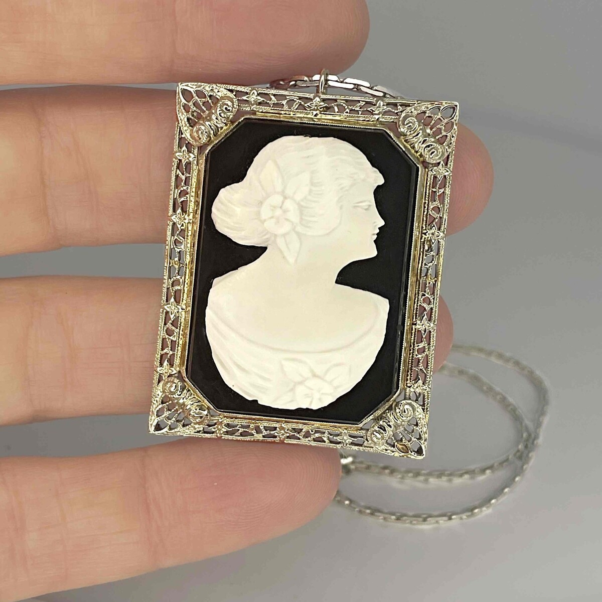 19.47 grams SCRAP GOLD & CAMEO NECKLACE 1920S 14K white GOLD!