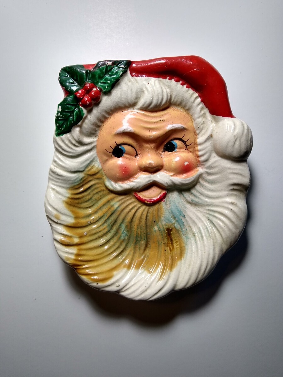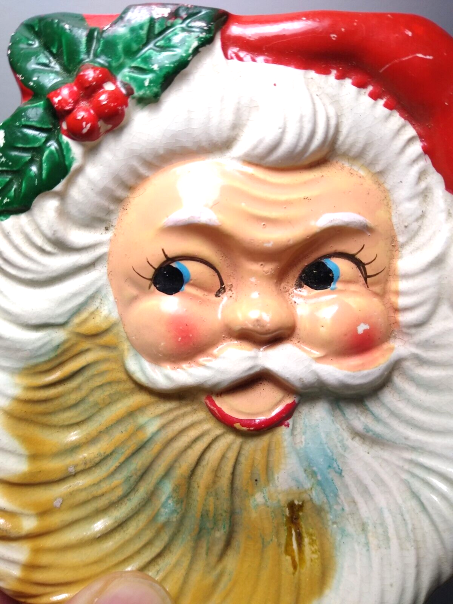 Santa Clause Christmas Soap Dish Head Face Ceramic Plate Japan Kitsch Vintage