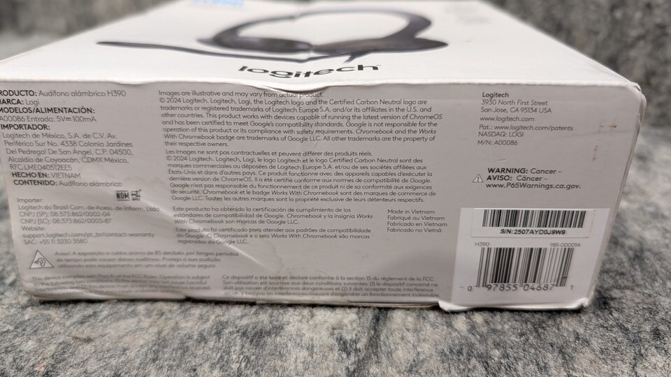 Logitech H390 USB Compute Headset Headphone Microphone Over On Ear New