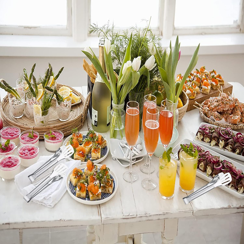 ?Multifunctional Kitchen Tongs?Mini tongs for serving food are a good helper kitchen utensils for indoor or outdoor, suitable for BBQ, grabbing toast pan-fried steak, cooking bacon or meat, appetizers, serving food in parties, family dinners and daily use. Tiny tongs also be a gift to your friends and family, for Christmas day or Mother's day.