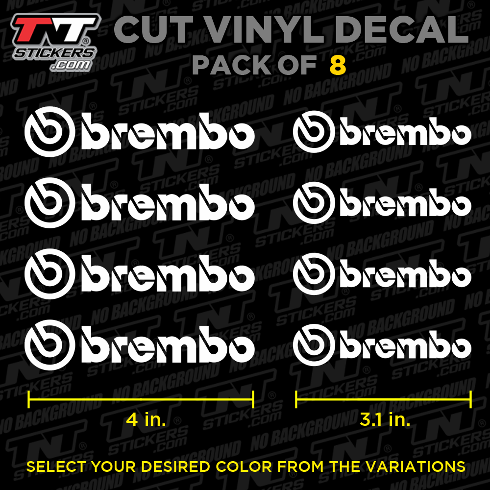 BREMBO Caliper Logos Car Brake Vinyl Decal Sticker – Waterproof – Pack of 8