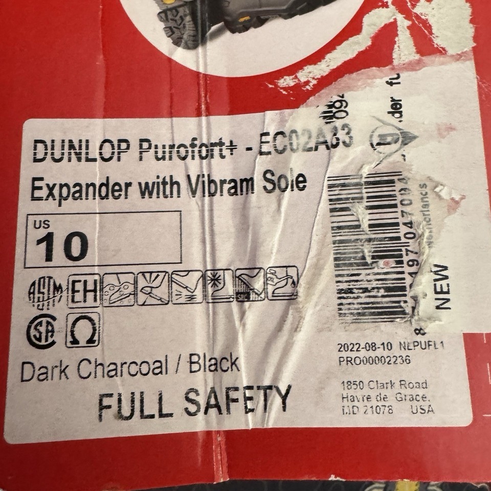 Dunlop Purofort+ Expander Full Safety Boots Vibram Sole Mens 10 Charcoal Black
