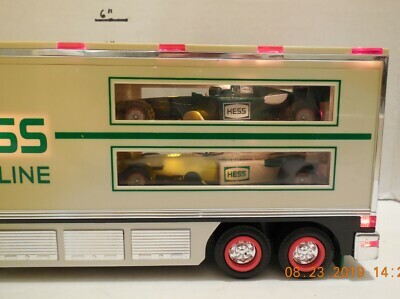 For Sale is a rare and hard to find 2003 HESS TOY TRUCK AND RACERCARS Lights Sound NO BOX as pictured in good used condition. NO BOX, Inserts or Manual What you see is what you will receive if its not pictured its not included. would make a wonderful addition to any Toy collection. Please ask Any and All Questions prior to purchasing. Fast Same or Next day shipping with Free Delivery Confirmation within the U.S. Payment Due within 7 days of purchase (if you need more time please let us know In advance) we love to combine shipping is always a Yes and Most of the time Additional Items Ship for free.