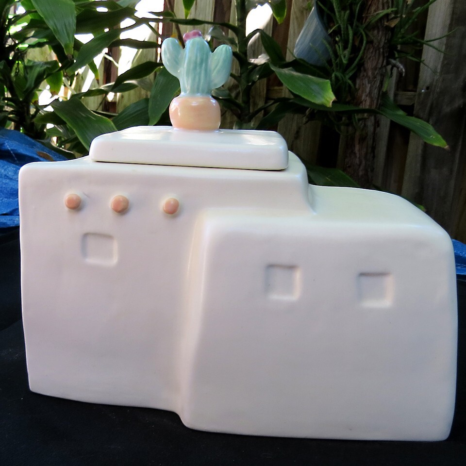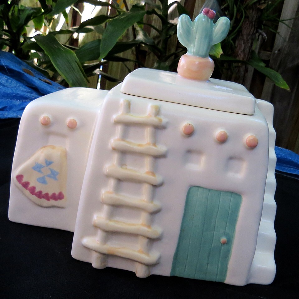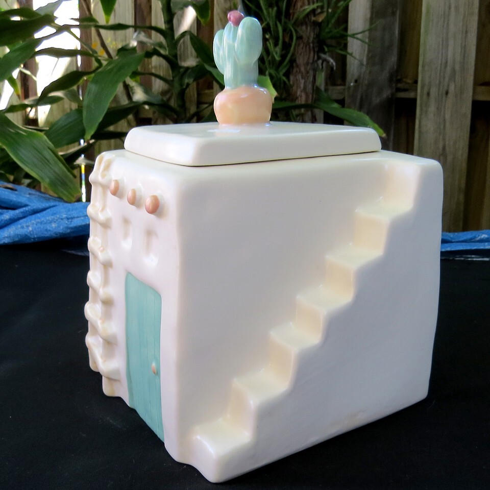 Treasure Craft Pueblo Mesa Southwestern Adobe Aztec Cactus Cookie Jar Stash Box