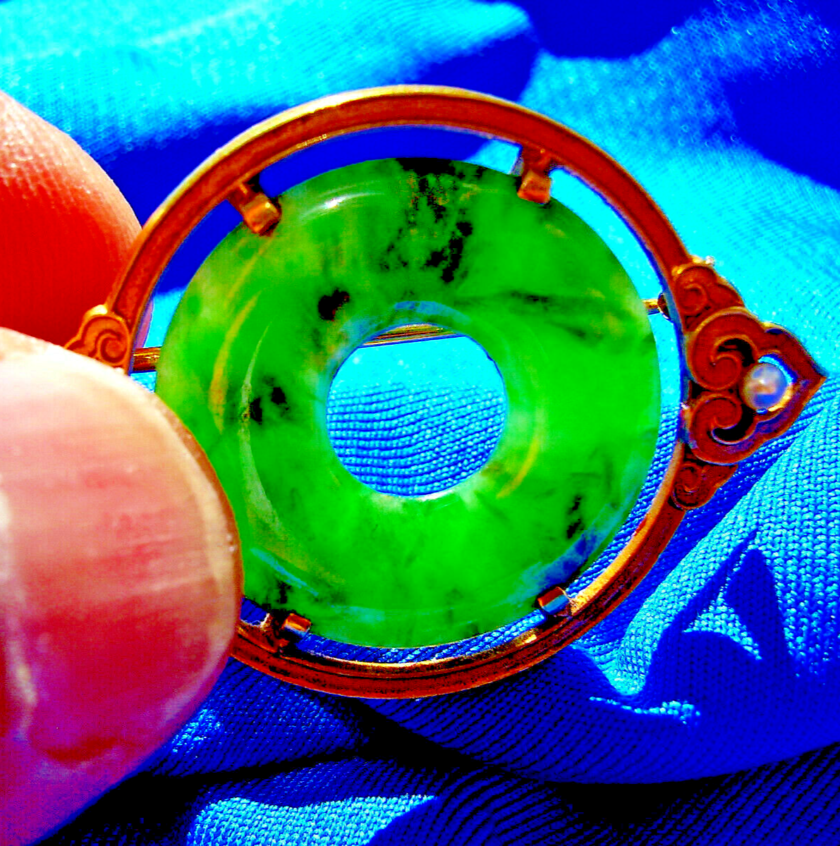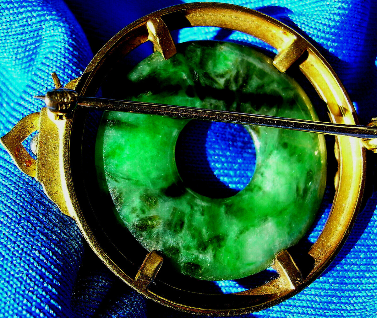 EARTH MINED Jadeite JADE ORIGINAL Art Deco Brooch Elegant Antique SOLID 14K GOLD