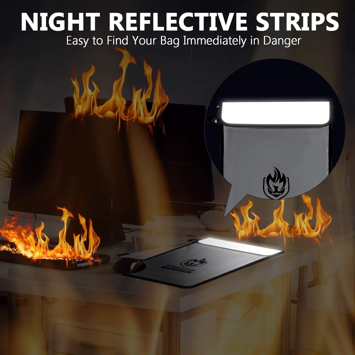 Fireproof & Waterproof Important Document Holder with Reflective Strip - 15"x11"