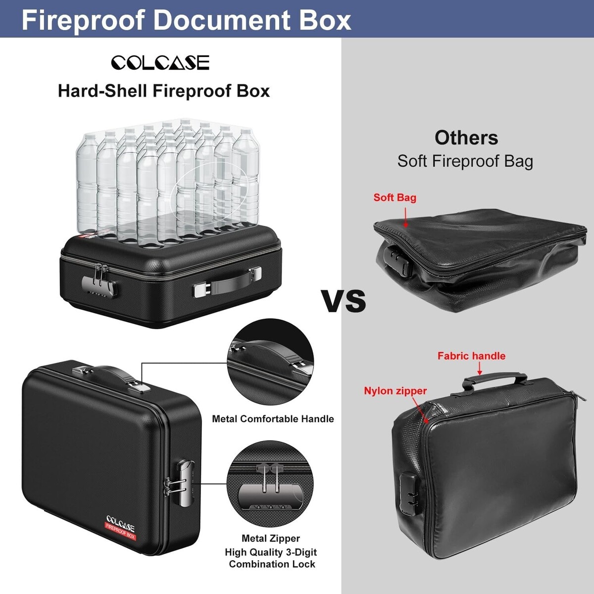 -94 VTM-0 Fireproof Document Box with Lock - Large 15x11x5, Black Elegance