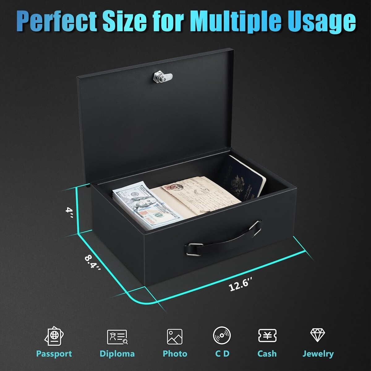 Portable Fire Safe Box with Key Lock - Secure Storage for Irreplaceable Items