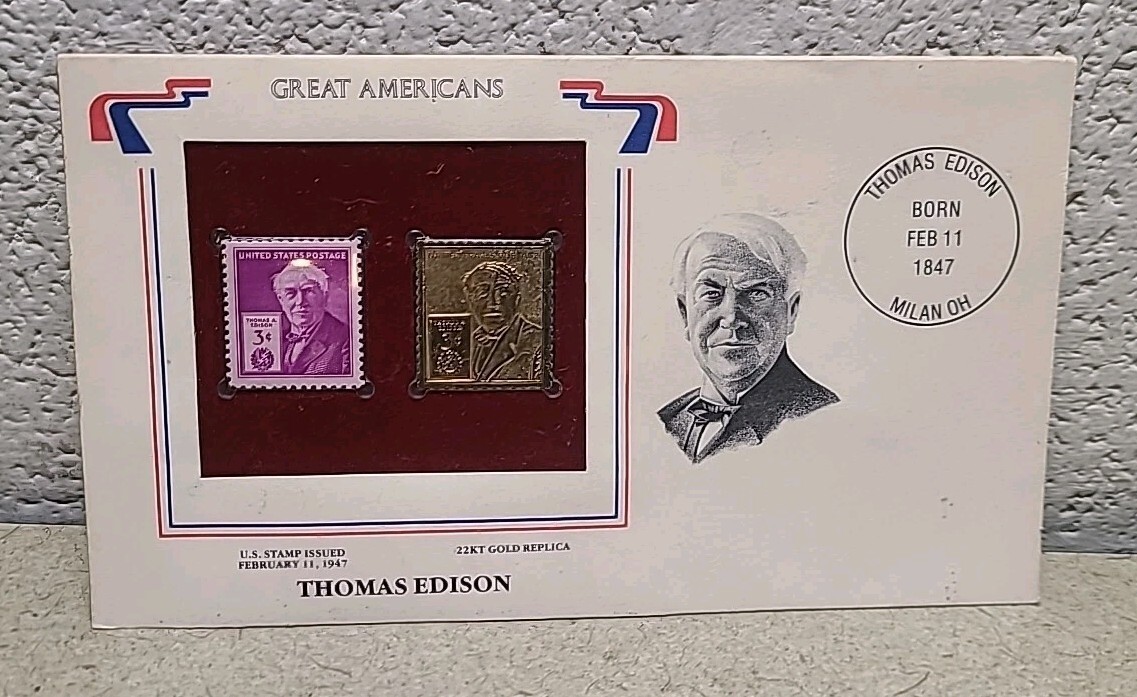Thomas Edison 22K Gold Replica Stamp w 1947 and 50 similar items
