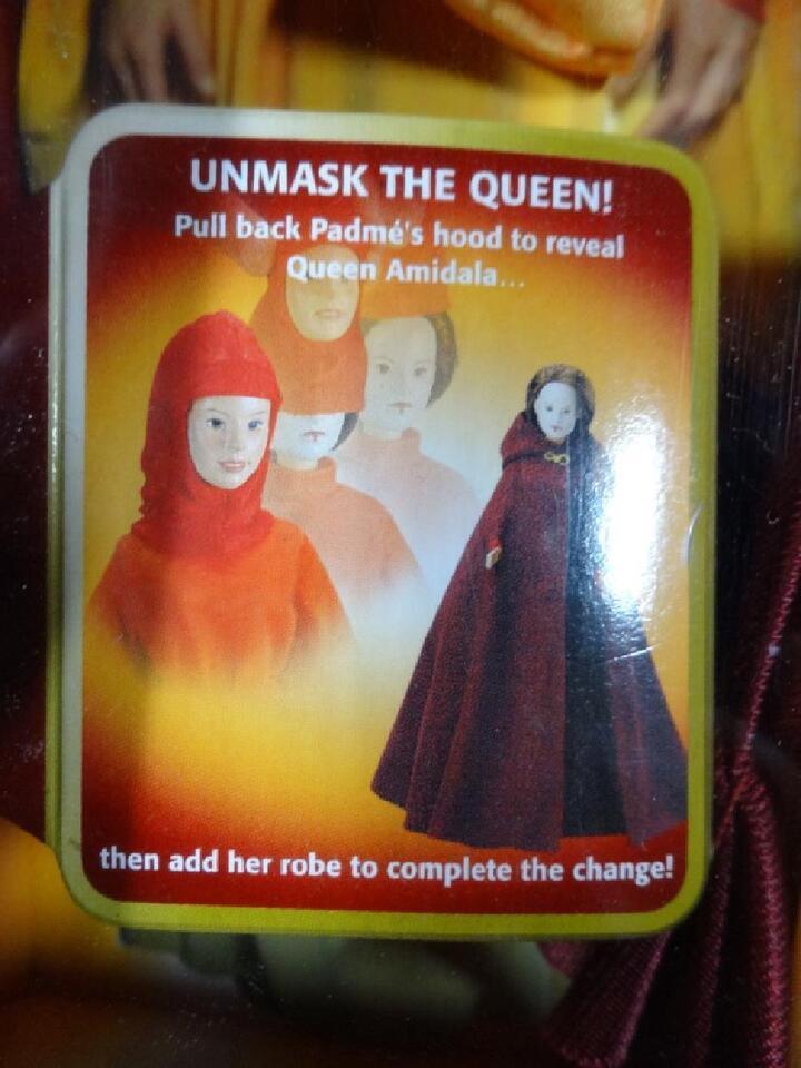 The Hidden Majesty Queen Amidala doll features a removable hooded mask (the young queen's handmaiden disguise).