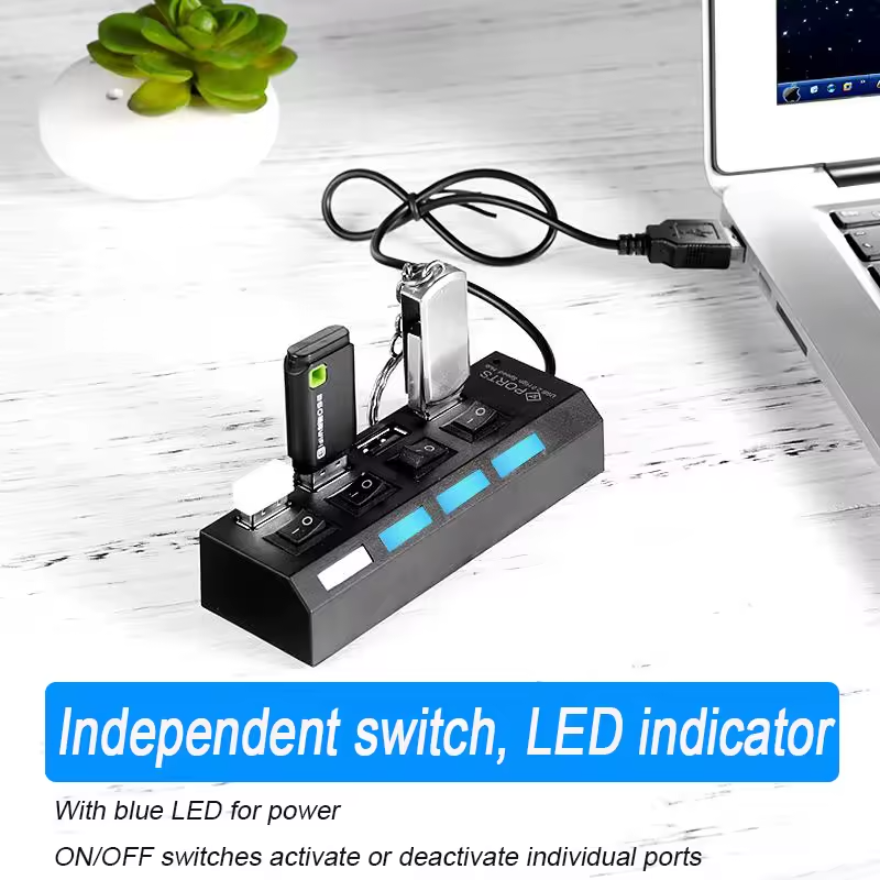 High Speed 7 Port USB 2.0 Hub Expander Splitter with LED Switch PC Laptop