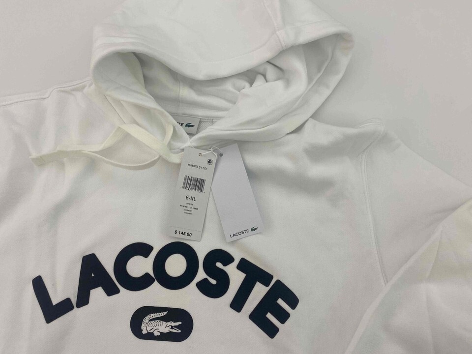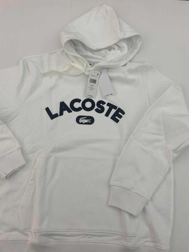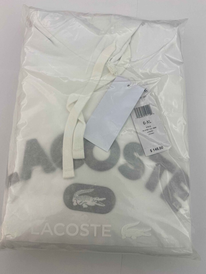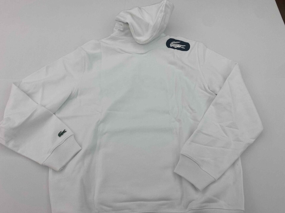 Lacoste Men's WHITE Long Sleeve Lightweight Pullover Hoodie prntd SH6876 SZ MED