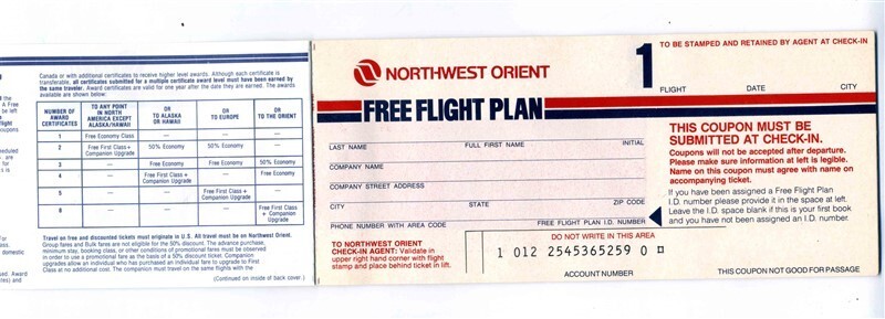 Northwest Orient Airlines Free Flight Plan 15 Coupon Book 1980's
