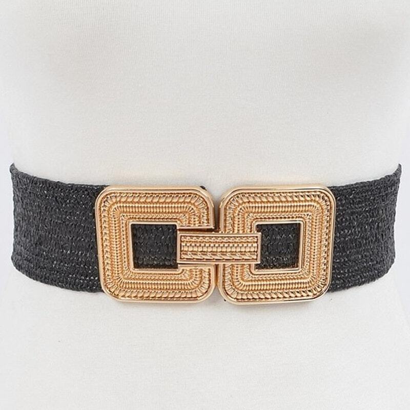Say goodbye to rigid belts that dig in or gap awkwardly. This adjustable stretch design contours to your body, providing a flattering fit whether you're sitting at your desk, running errands, or out for dinner. The elegant gold buckle adds a touch of glamour