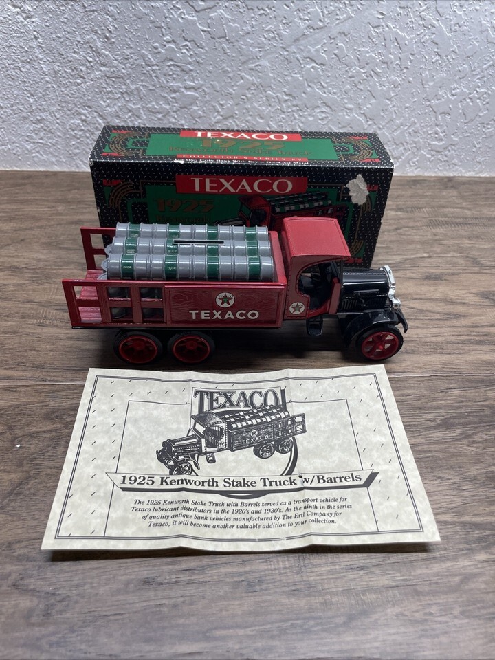 Ertl Texaco 1925 Kenworth Stake Truck Coin Bank with Key Die Cast Metal KG JD