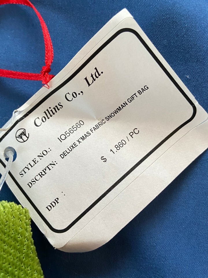 Snowman Head Cloth Gift Bag 9 1/4" *NEW/UNUSED w/Tags* mm1
