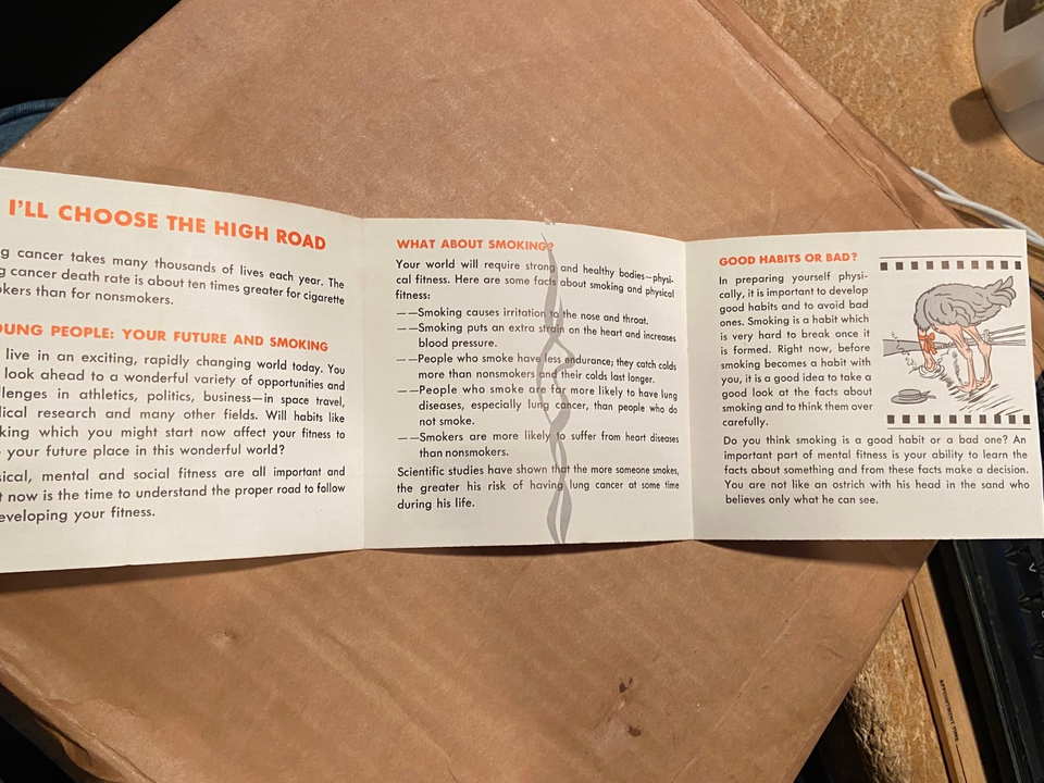 Vintage 1960's Tri Fold Don't Start To Smoke Pamphlets 4.25" X 4.5" *NEW* BT3