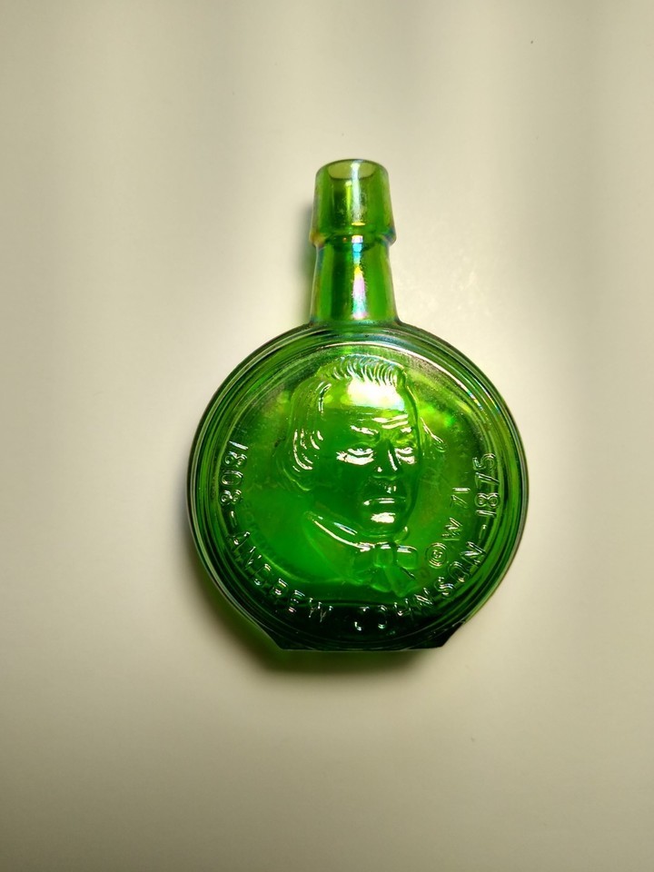 Wheaton Green Carnival Glass Bottle Andrew Johnson 1971 Mini 3" Vintage Retro