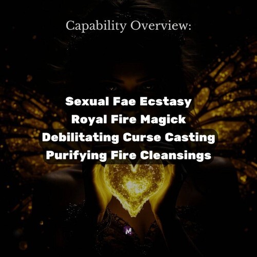 Royal Fire Magick: Her Royal Fire Magick power is unparalleled. As a Fire Fairy Princess, she commands ancient and potent Magick that can induce prolonged states of sexual ecstasy, stimulating your pleasure centers for hours. Her fiery presence cleanses your Chakras, removing spiritual blockages and boosting sexual energy. Additionally, she can cast powerful curses on deserving targets, ensuring your will is enforced. This combination of sensuality, cleansing, and formidable Magick makes her a unique and invaluable companion. Are you ready to be her royal partner?