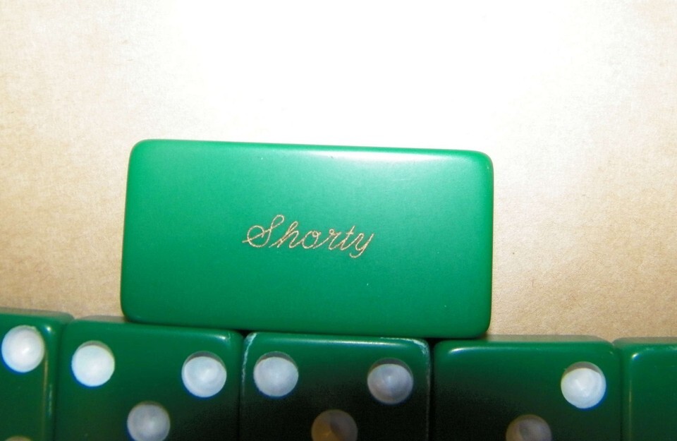 SET of MARBLELIKE DOMINOES made by Creative Plastics color GREEN in box SHORTY