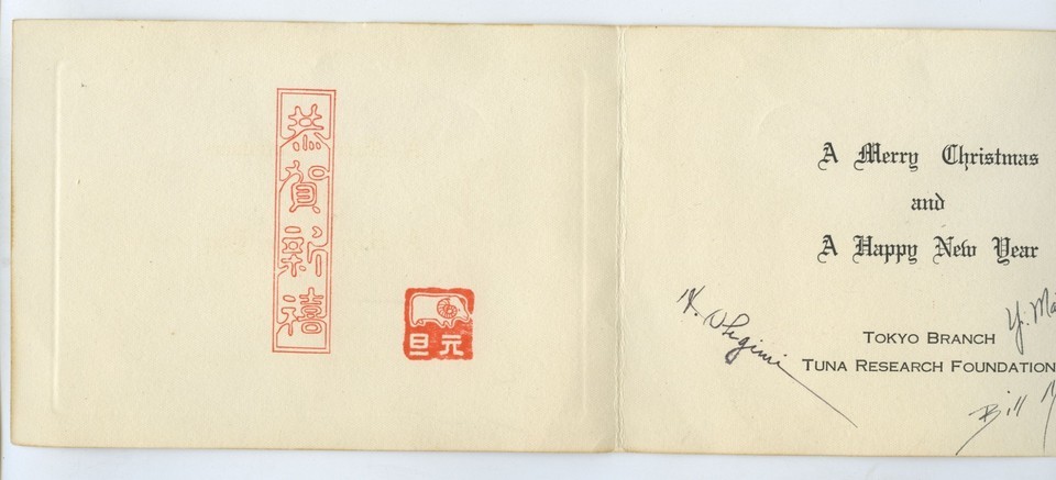 CHRISTMAS CARD from TOKYO BRANCH TUNA RESEARCH FOUNDATION signed - ART COVER