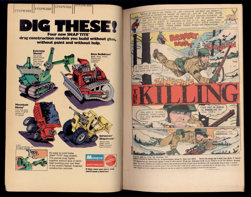 CHARLTON Comics FIGHTIN' ARMY #106, 107 -1973 ungraded comic details scanned