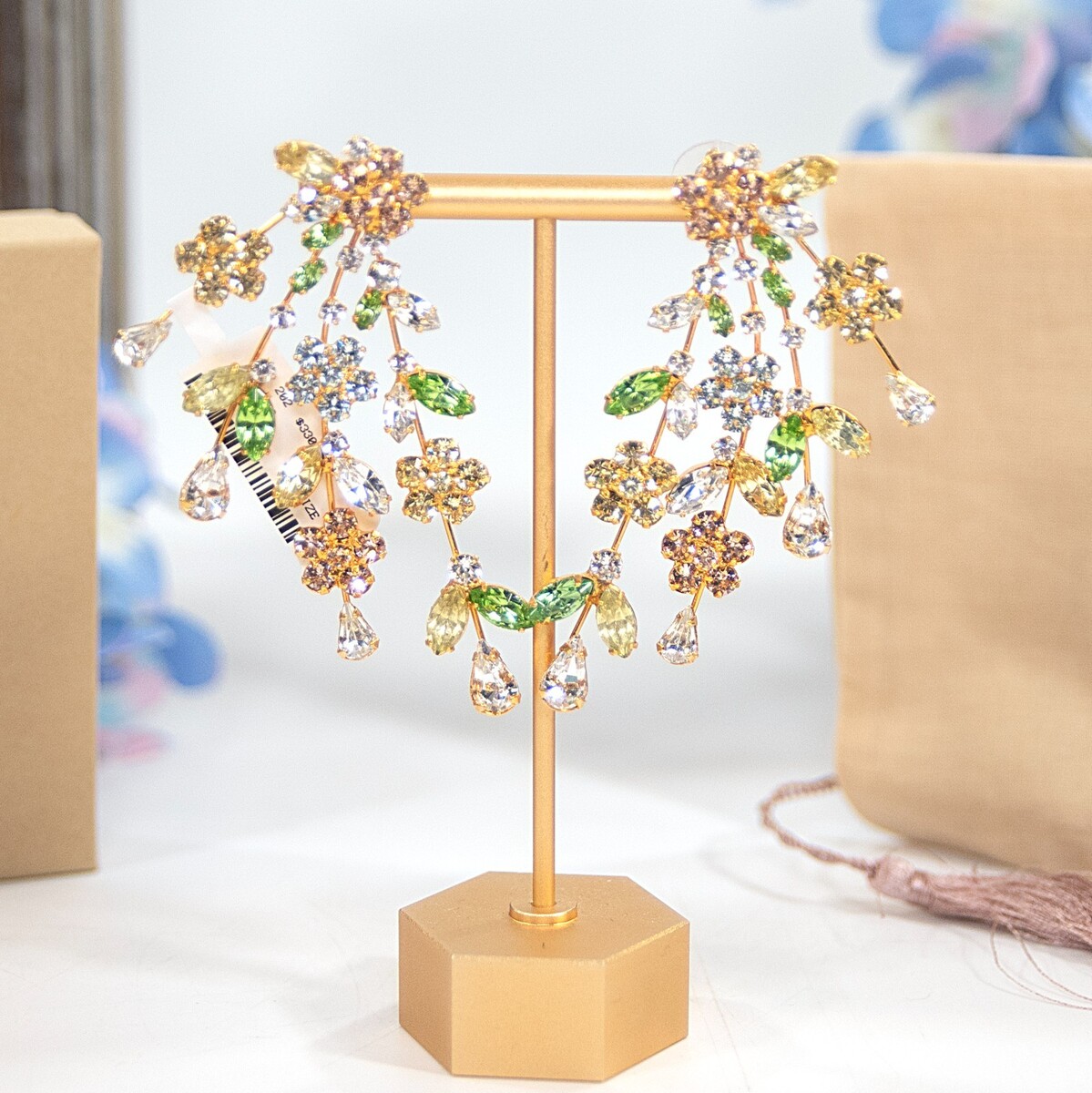 Jennifer Behr 18kt Gold Plated Daphne Crystal Floral Flower Earrings NWT $675